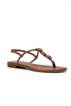 Descrição: Sandália rasteira com tiras finas e aplicação tonal no cabedal. Modelo com bico arredondado, calcanhar aberto e fechamento lateral com fivela dourada. Visual minimalista, prático e versátil para o dia a dia.