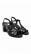 Sandália feminina de salto bloco médio, confeccionada em material sintético preto e caramelo com acabamento brilhante. Possui tiras largas entrelaçadas sobre o peito do pé, formando um desenho elegante e moderno. O fechamento é feito por fivela ajustável lateral, garantindo segurança e bom ajuste ao calce. O salto bloco proporciona conforto prolongado e firmeza ao caminhar, tornando-a ideal para o uso diário ou eventos que pedem sofisticação com praticidade.